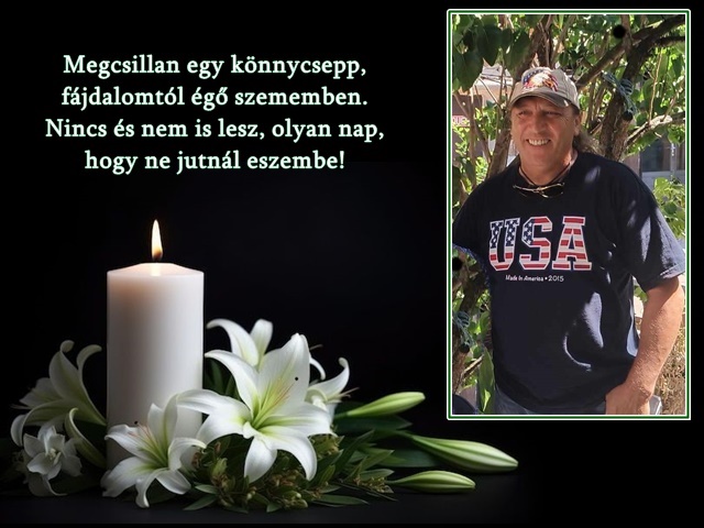 Drága szeretteim végtelenül hiányoztok. Drága Öcsém hirtelen halálod nagyon fájó, helyedet nem pótolhatja senki és semmi. Mindenkinek nagyon hiányzol, jóságod, szereteted amivel elárasztottad a családodat, barátaidat hatalmas űrt hagyott. Remélem Isten házában lakozol, nyugodj békében. Nagyon szeretünk.