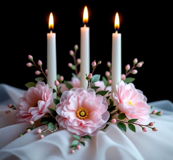 "Kati / Édesanya - János/ Édesapa" égő gyertyái
